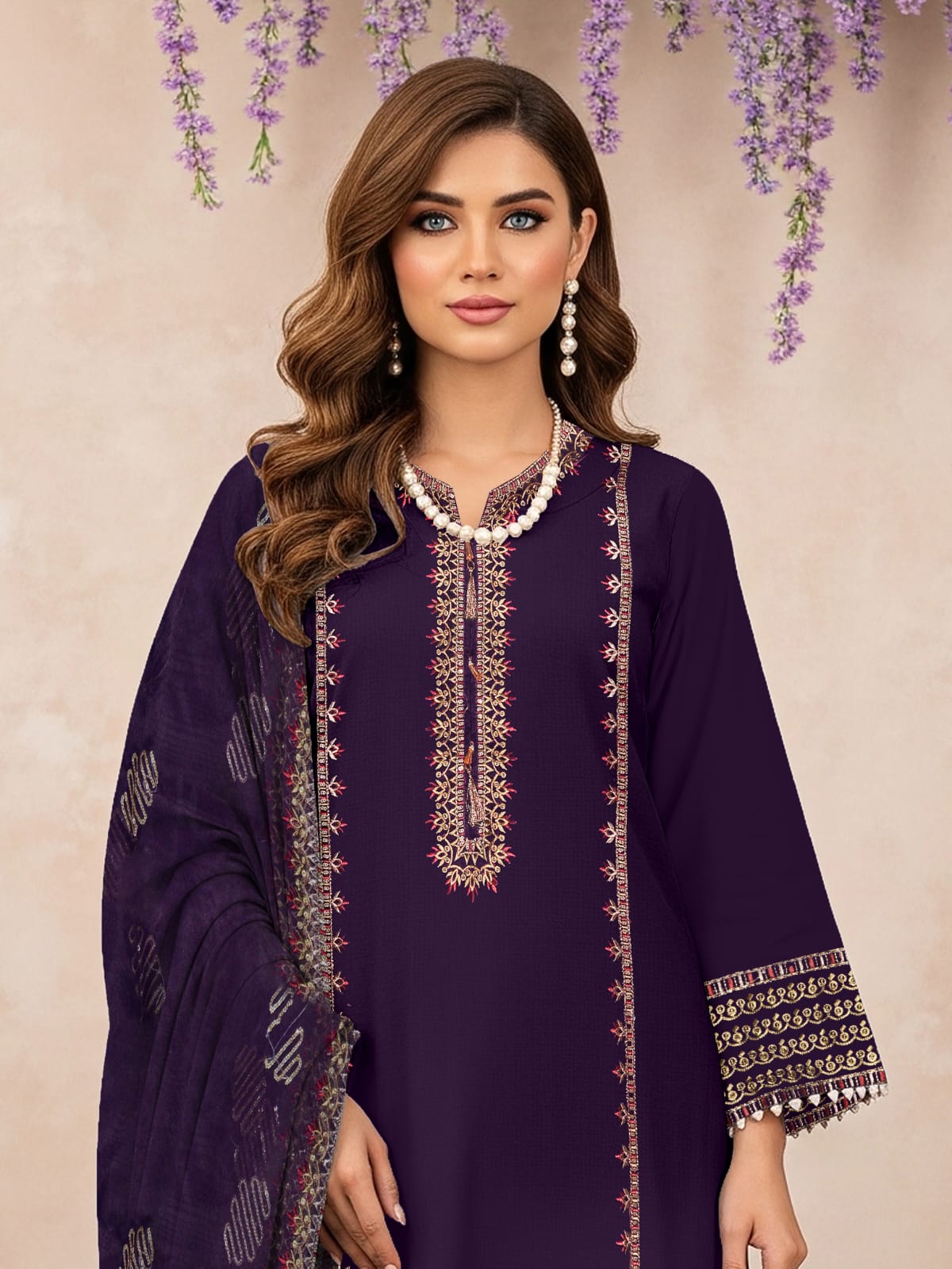 Lawn 3 Piece Suit Stitched - Royal Purple